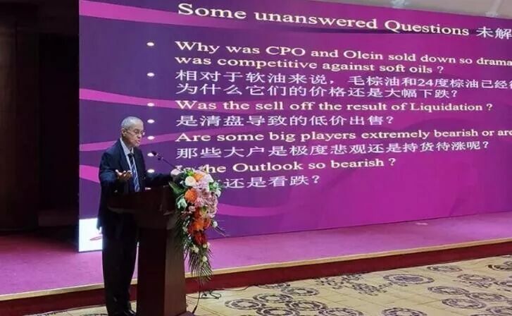 5月24日,在第十六届国际油料油脂大会上,Godrej国际公司的DorabMistry先生作题为“2019年棕榈油及其他植物油价格展望”的报告。